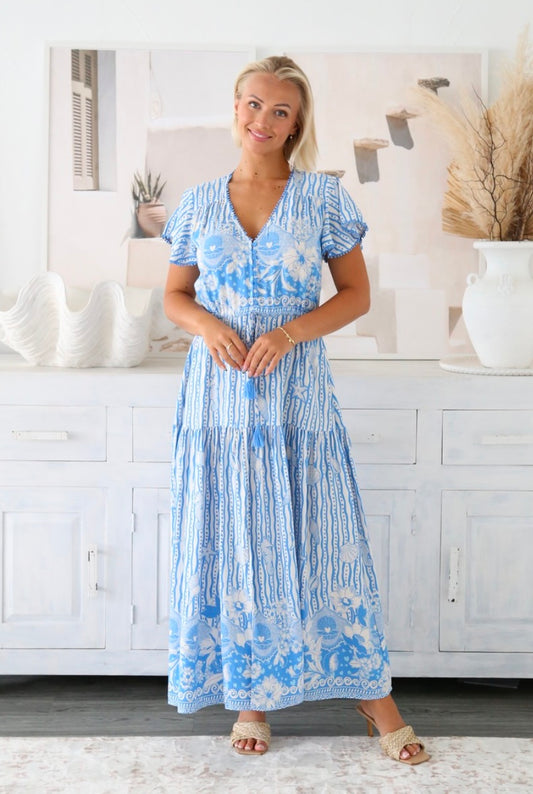 Celeste Short Sleeve Button Up Maxi Dress - Blue Sea Shell