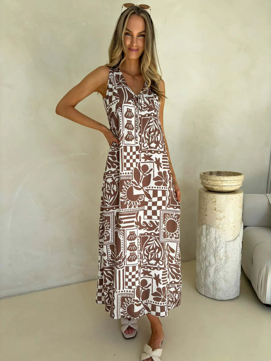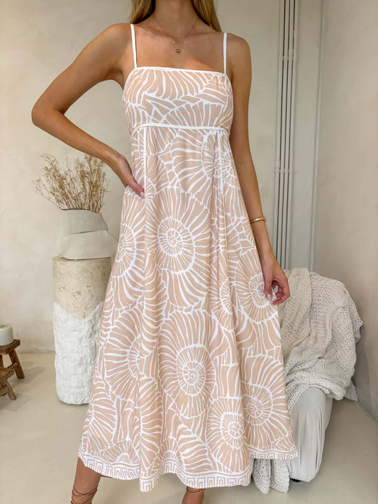 Juniper Sleeveless Midi Dress - Beachcomber Print