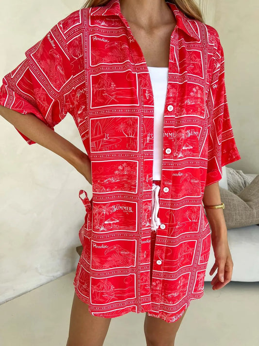 Aria Button Up Matching Shirt & Shorts Set - Port Vila
