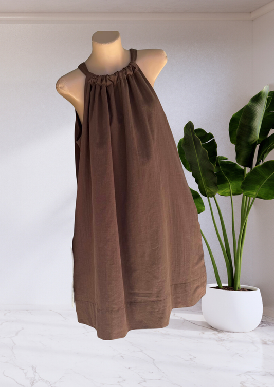 Billy Adjustable Halter Neck Mini Dress - Choc Brown | By Frankie