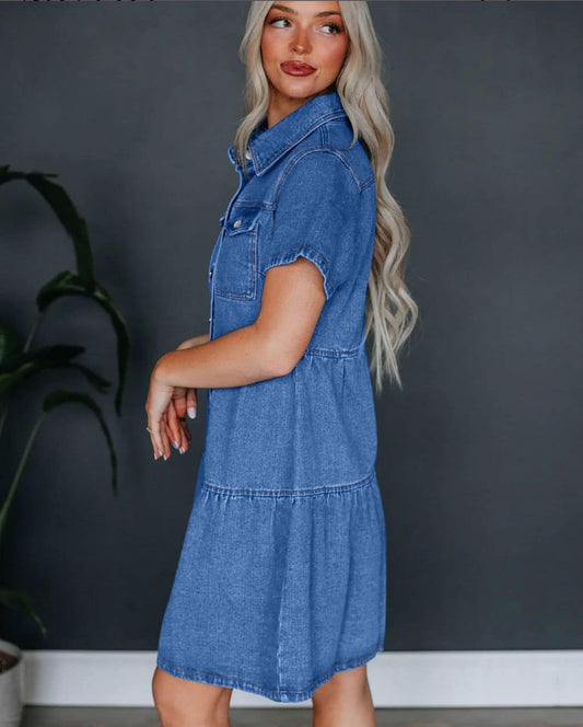 Bailey Puff Sleeves Button Up Denim Mini Dress - Blue