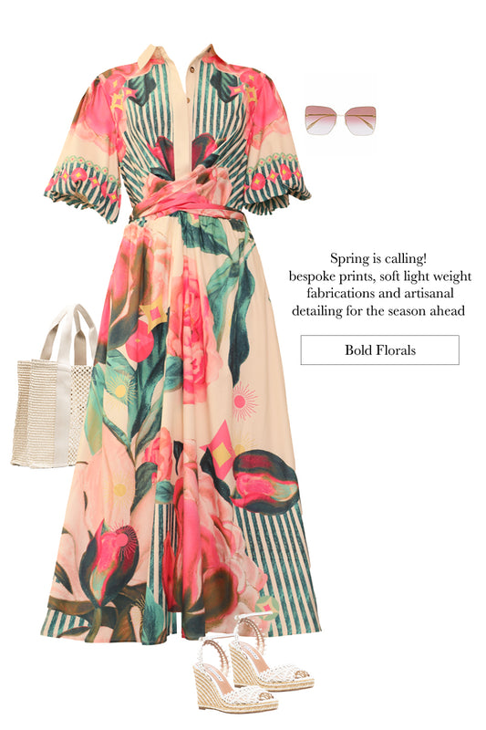 Jasmine Collared Belted Button Up Maxi Dress - Pink Floral
