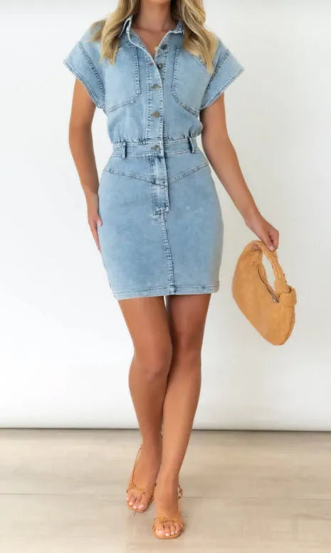 Bailey Button Up Denim Mini Dress - Light Blue