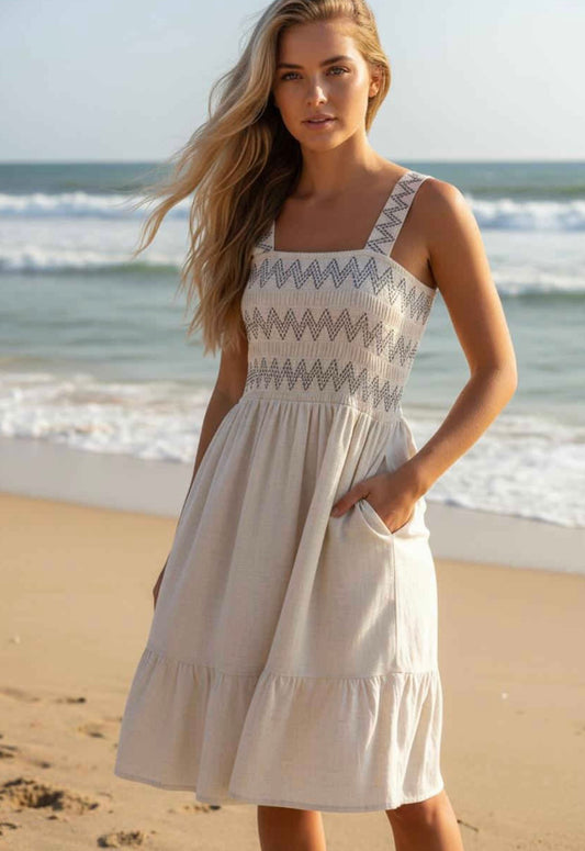 Anna Square Neck Sleeveless Mini Dress - Beige