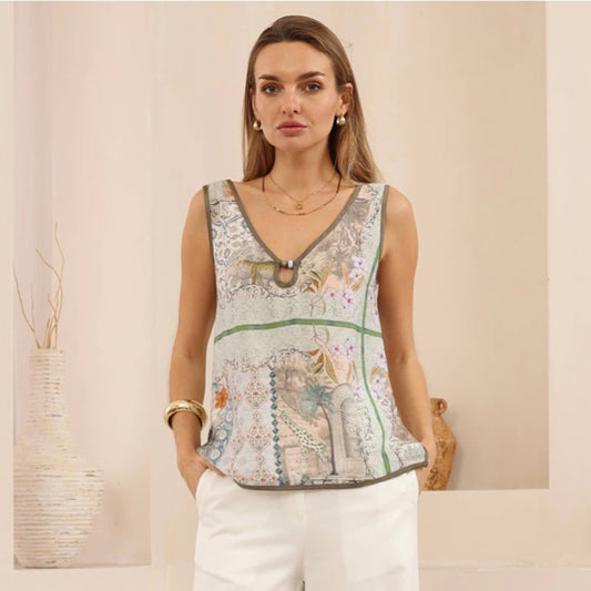 Bree Long Line Top Shirt - Green Zoo