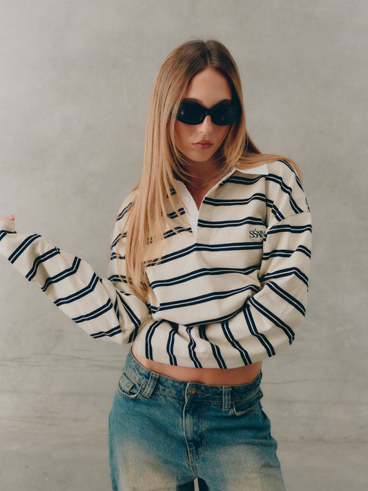 Ryder Rugby Polo cream & navy stripes