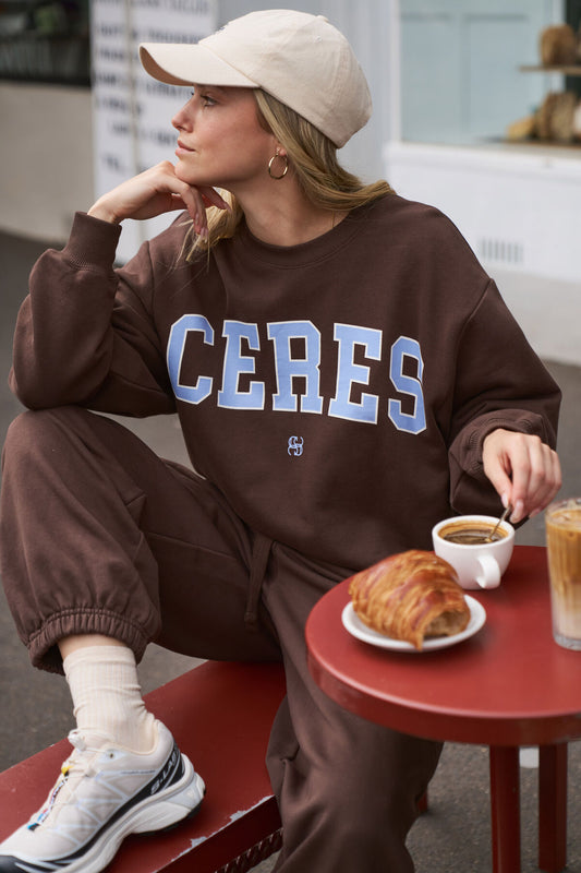 Isla Oversized Slouchy Crew - Brown Heritage Logo