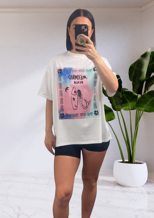 Mya Oversized T-Shirt White Mermaid Beach