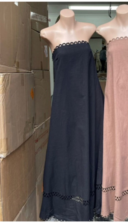 Georgie Strapless Tube Lace Ladder Maxi Dress - Black | By Frankie