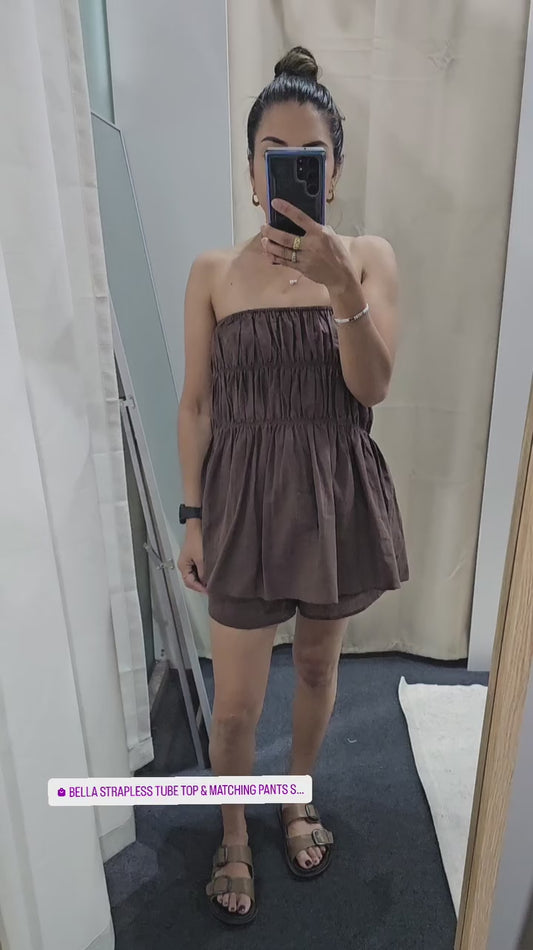 Bella Strapless Tube Top & Matching Pants Set - Brown | By Frankie