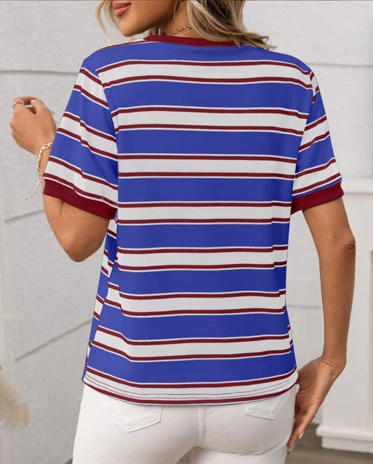 Trish Contrast Trims Stripe Tee Shirt - Blue Maroon