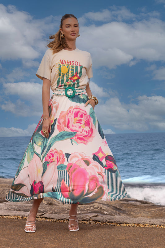 Rebecca Belted Maxi Skirt - Marisol Pink