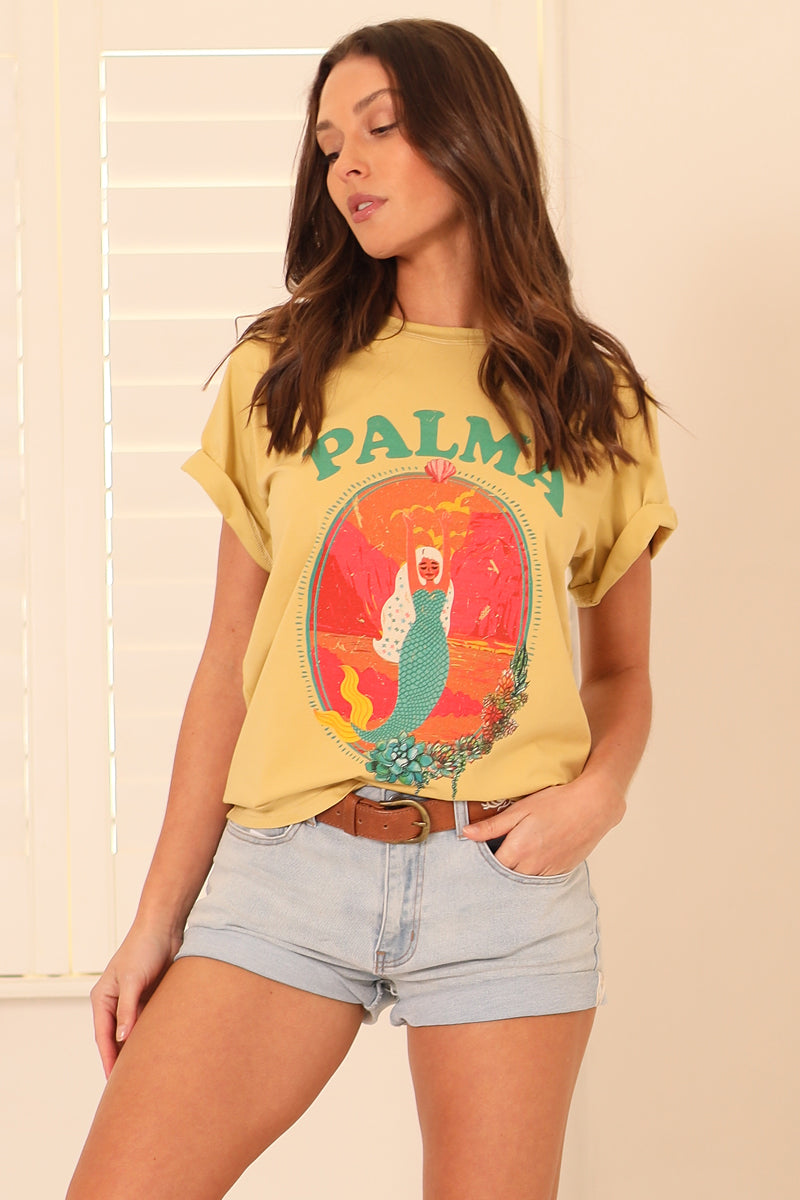 Addison Short Sleeve Tee T-Shirt - Mustard Palma Mermaid