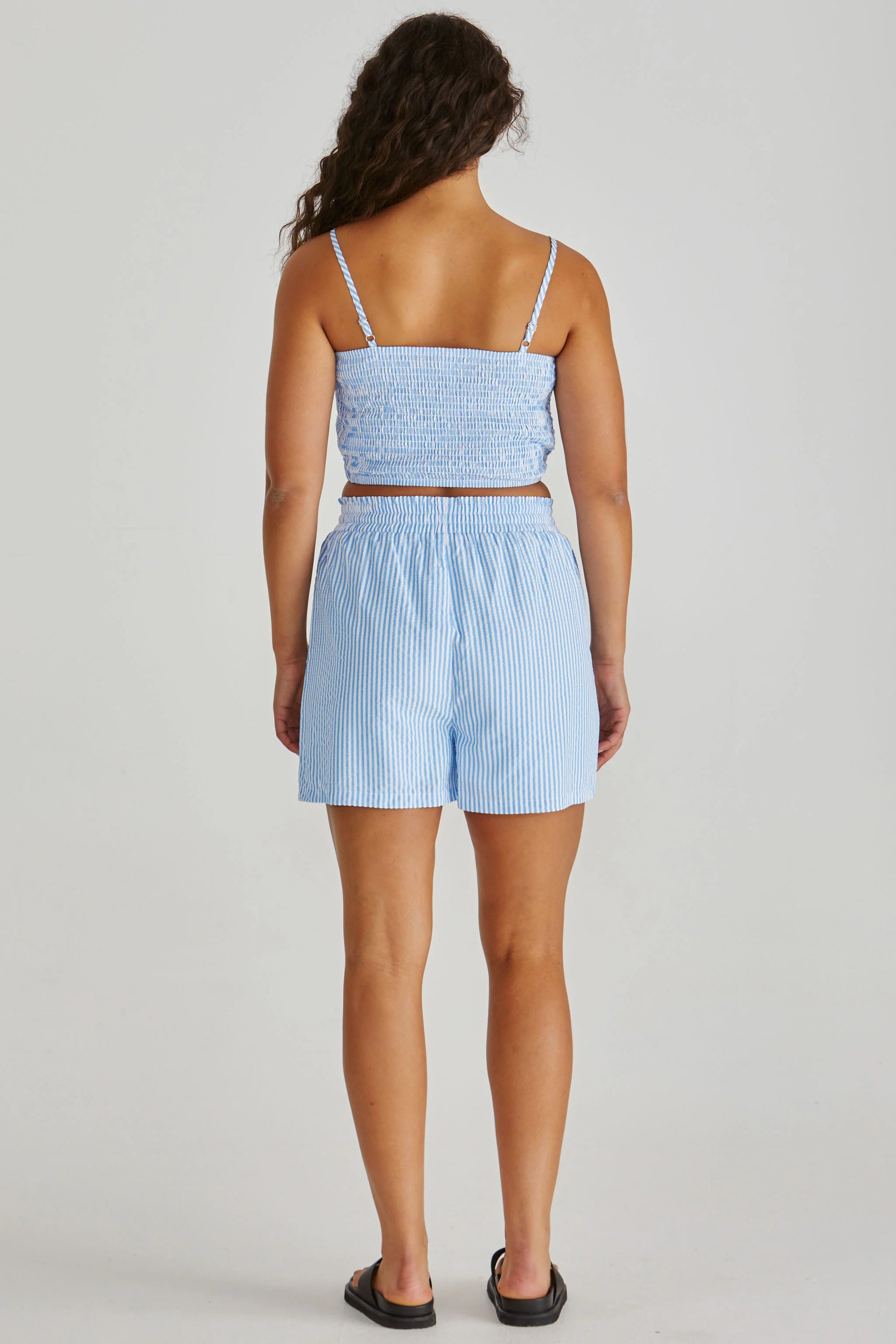 Alani Shirred Bralette Crop Top Shirt - Blue White Stripe