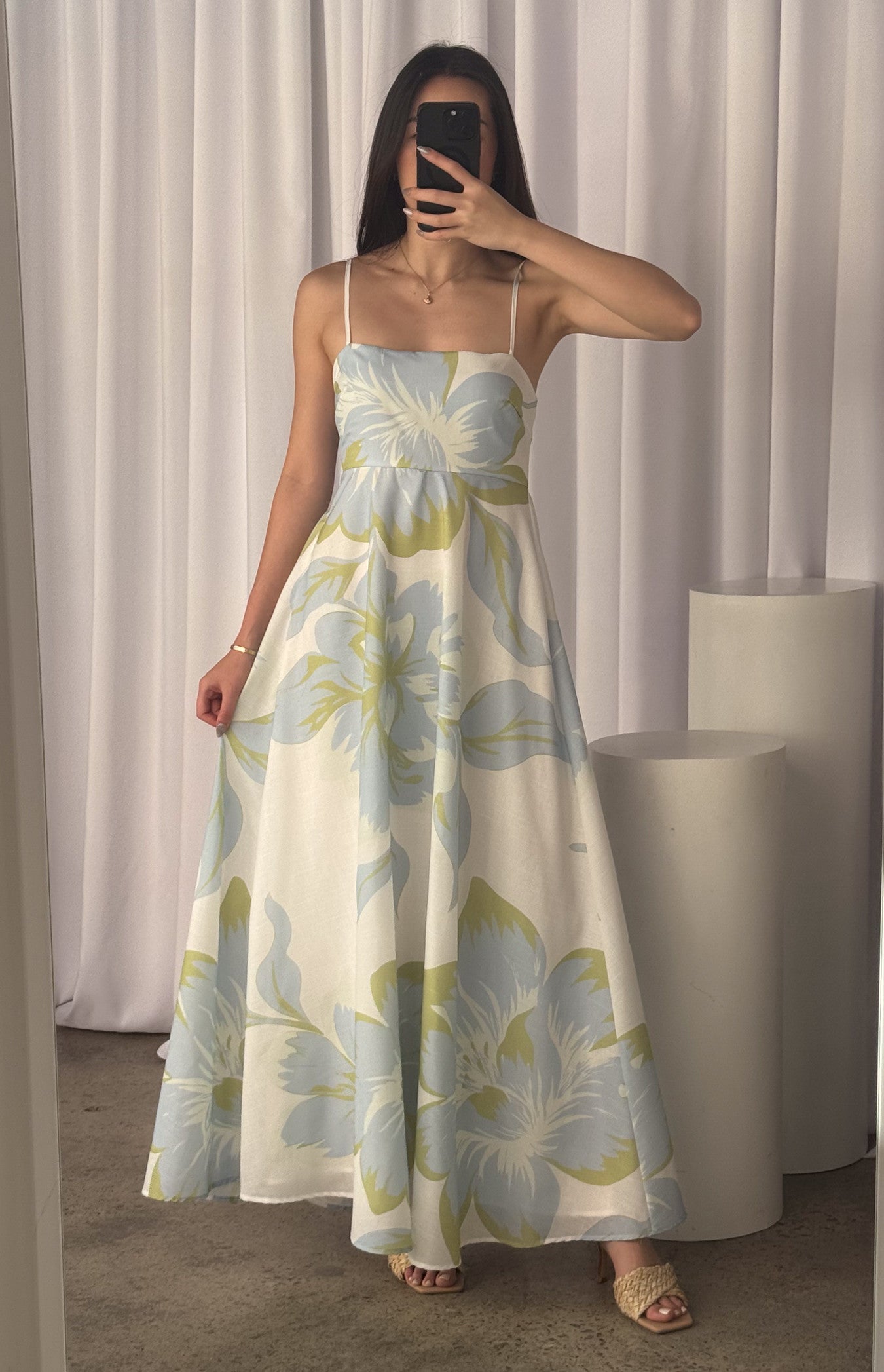 Chelsea Big Floral Print Maxi Dress - Blue Green
