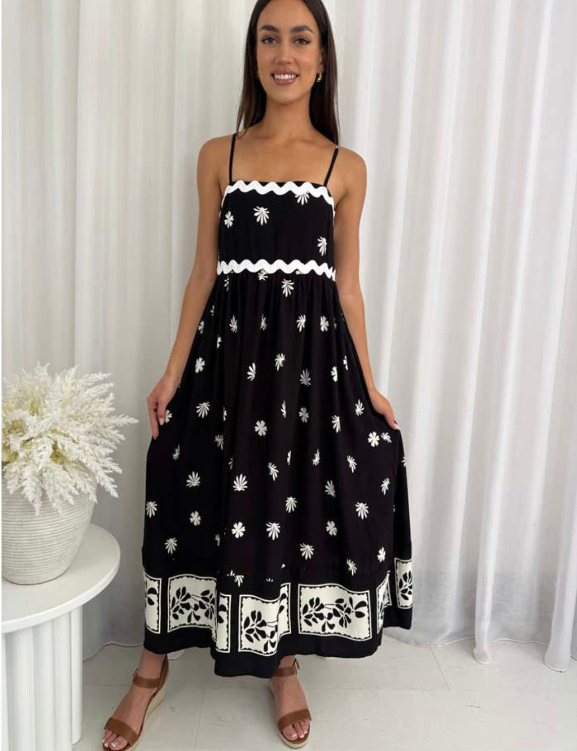 Eden Sleeveless RIC RAC Maxi Dress - Black Floral