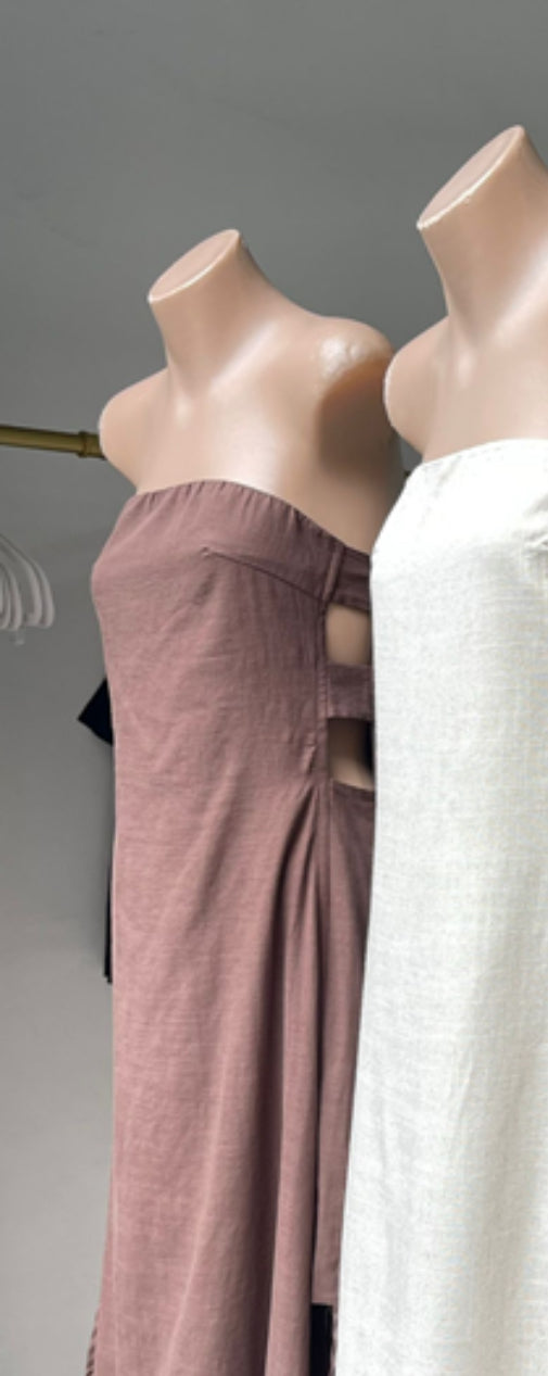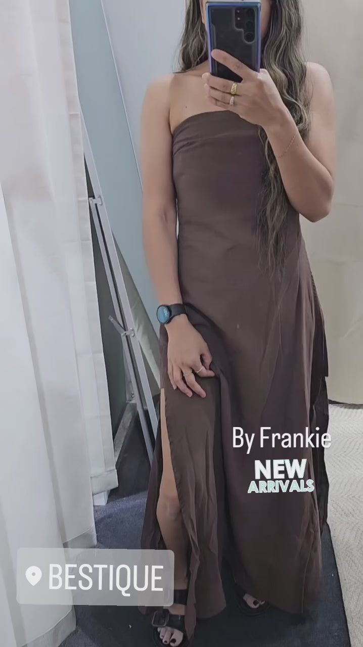 Georgie Strapless Tube Side Cut Out Side Split Maxi Dress - Brown | By Frankie