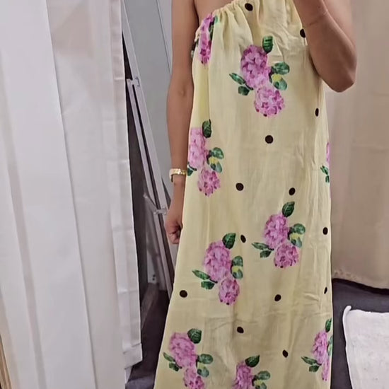 Holly Polka Dot Hydrangea One Shoulder Maxi Dress - Yellow | By Frankie