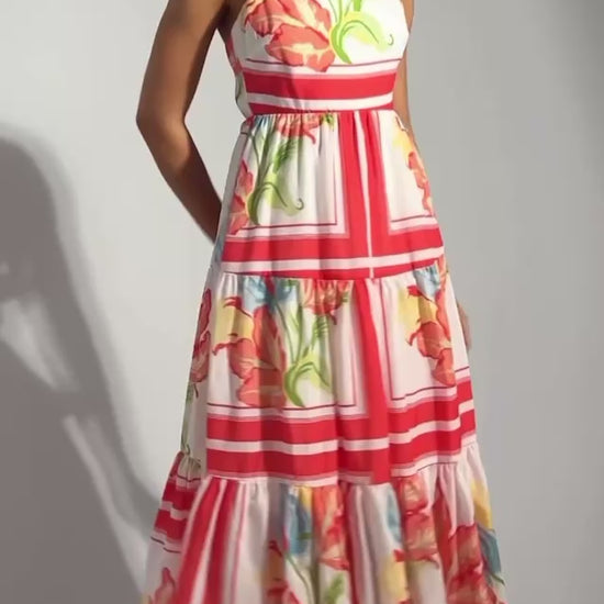 Jayde Floral Tiered Tie Back Detail Midi Dress - Watermelon