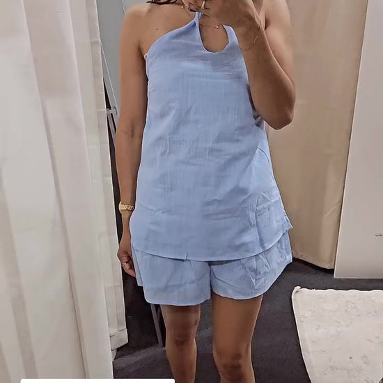 Kay Halter Neck Top & Short Set - Blue | By Frankie