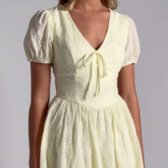 Kaylee Embroidered Cotton V Waist Panel Mini Dress - Lemon Yellow