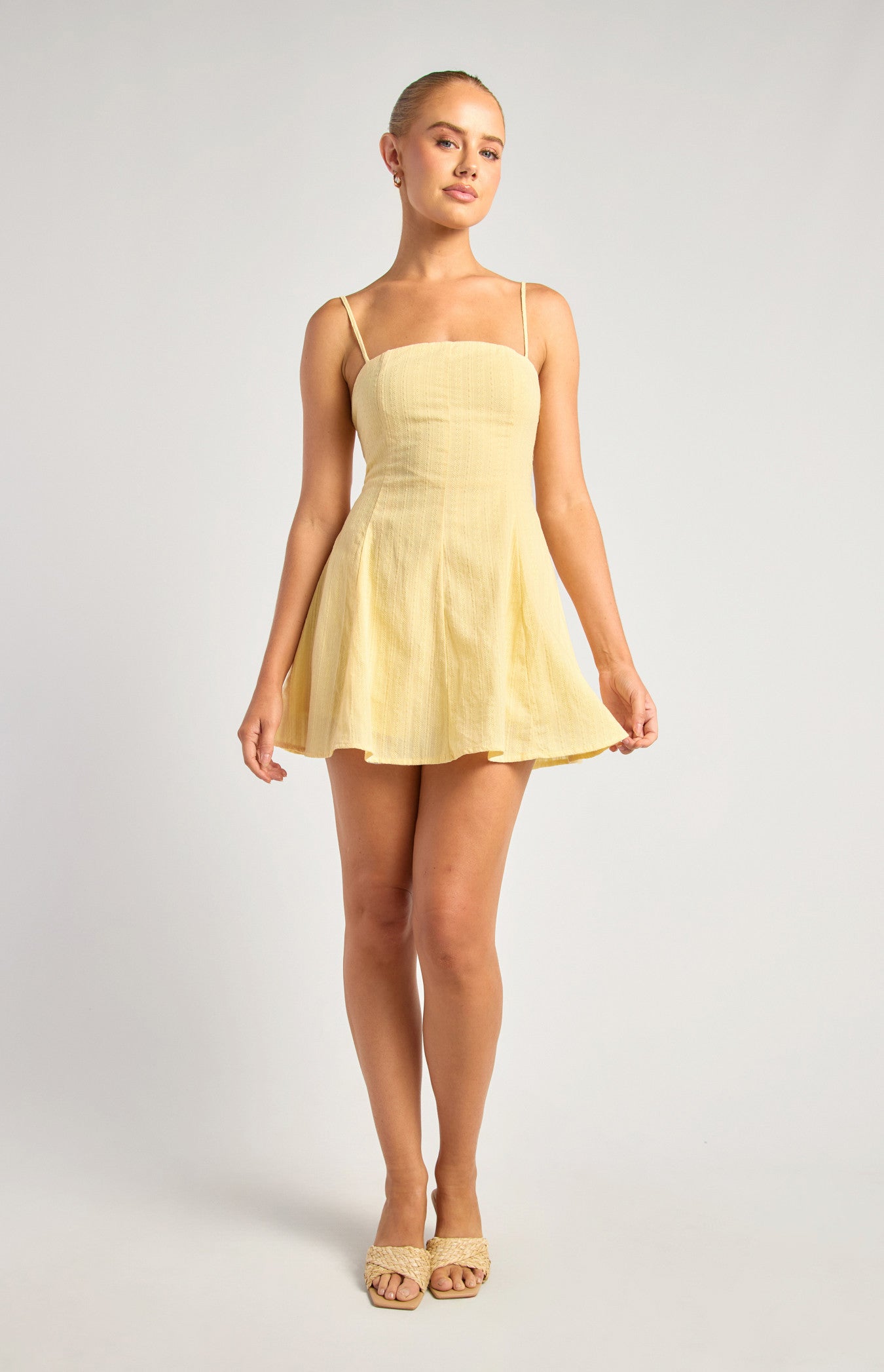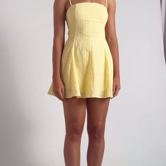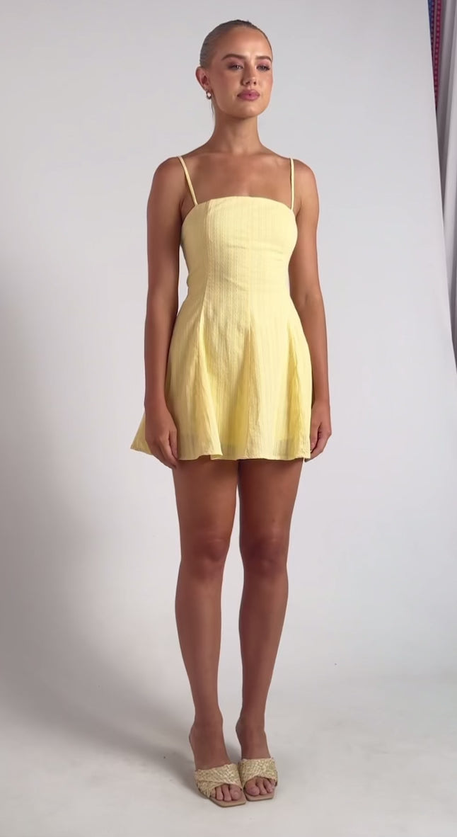 Khaya Lace Up Back Detail Embroidered Cotton Dress - Lemon Yellow