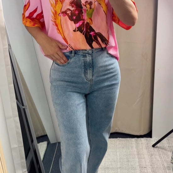 Kylie High Waisted Wide Leg Denim Jeans - Light Blue
