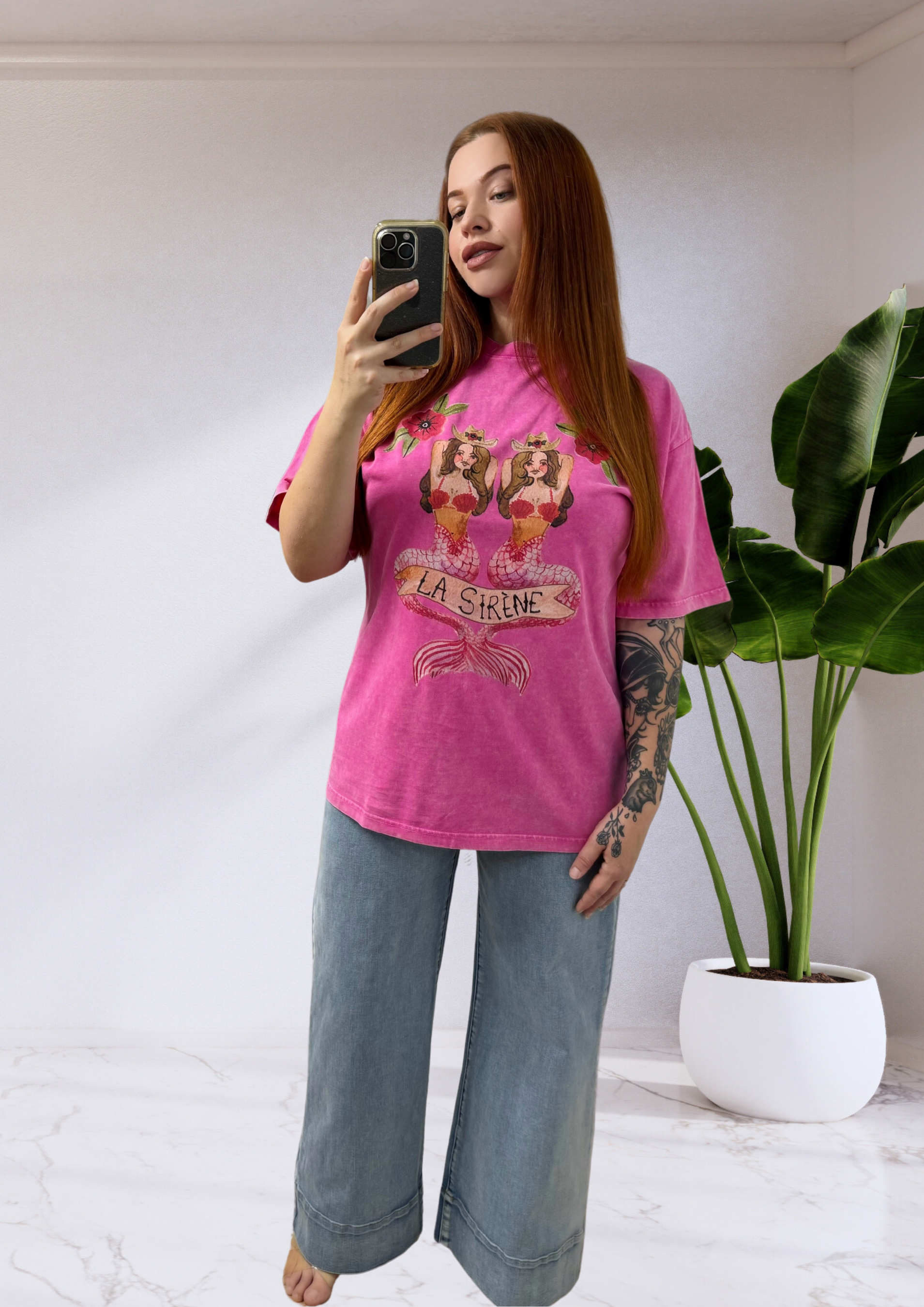 MAKU Mermaid La Sirene Oversized Tee Shirt - Pink