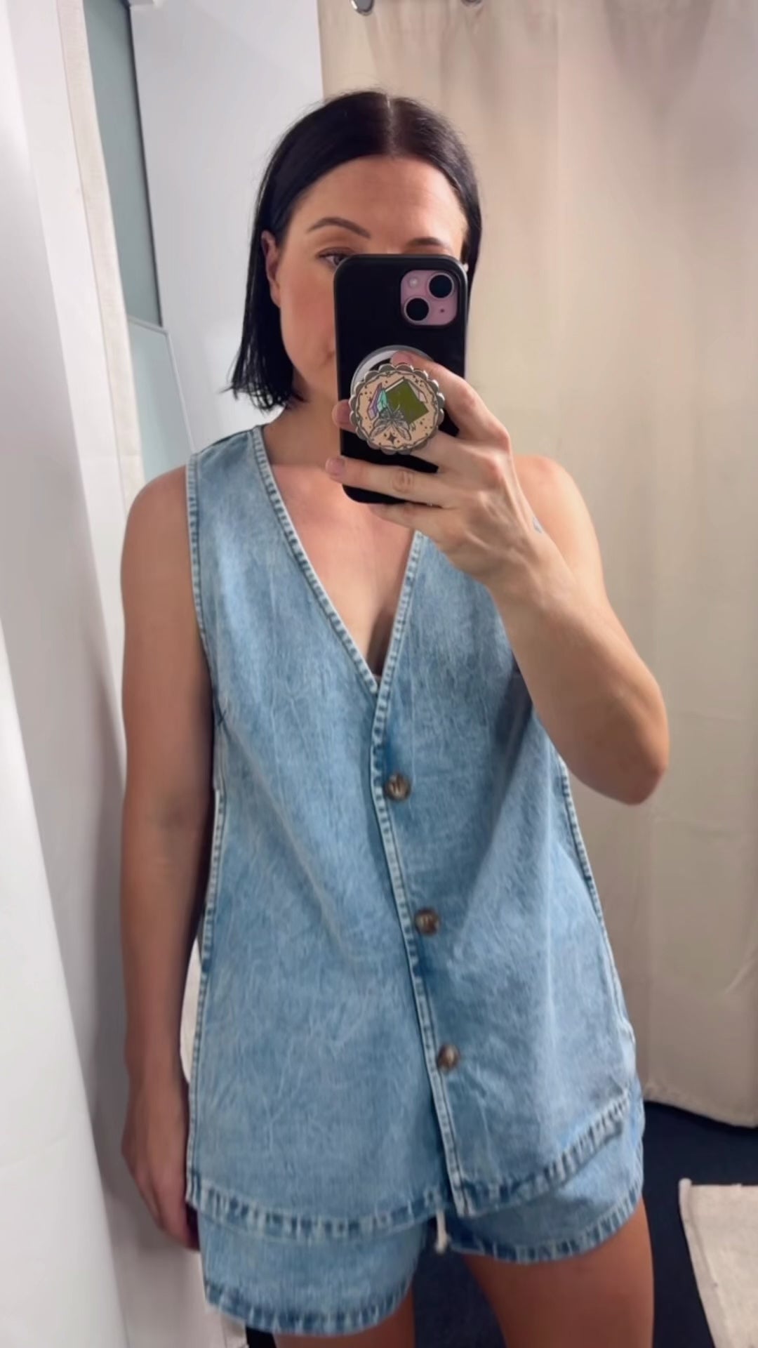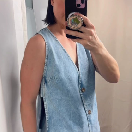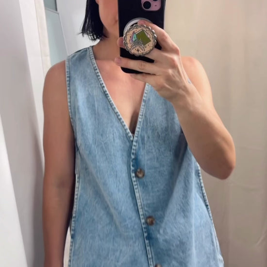 Milly Polka Dot Button Up Open Vest Shirt & Shorts Set - Denim Light Blue | By Frankie